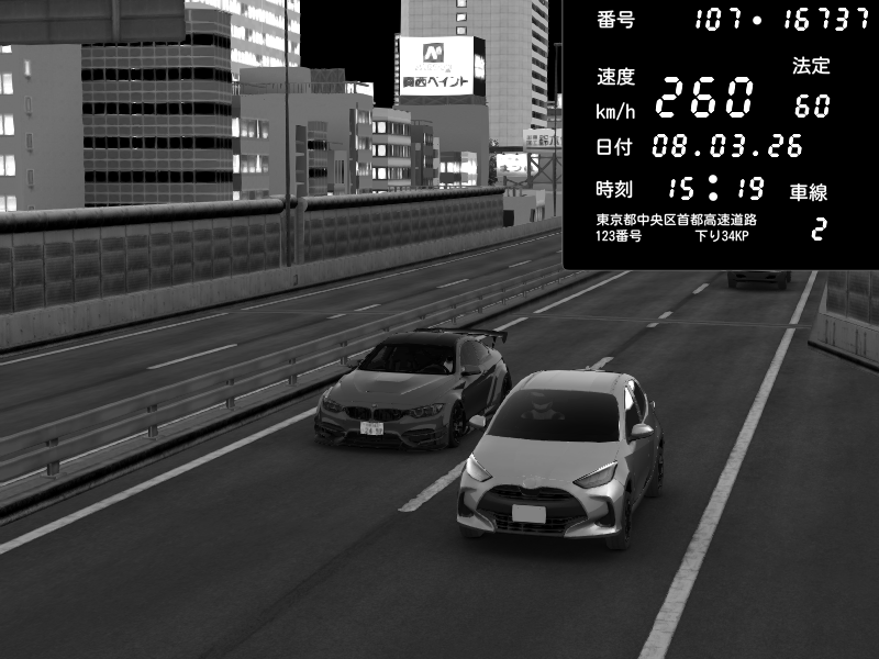 | 2026/03/08 15:11 | C1外回り 芝公園 | 262 / 60 km/h | Ventus | BMW M4 crash.Sp Varis Widebody | CAPTURE |