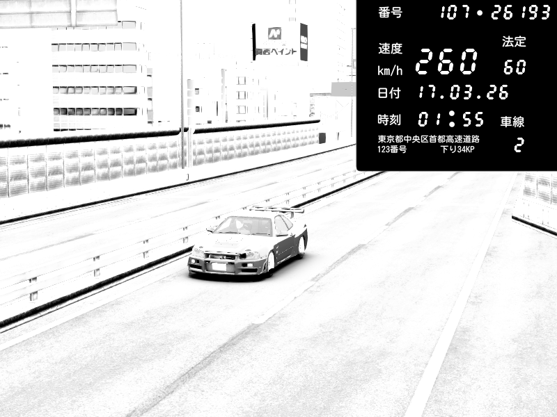| 2026/03/17 23:50 | C1外回り 芝公園 | 258 / 60 km/h | omafu | Nissan Skyline GTR R33 (S3 - Wangan) | CAPTURE |