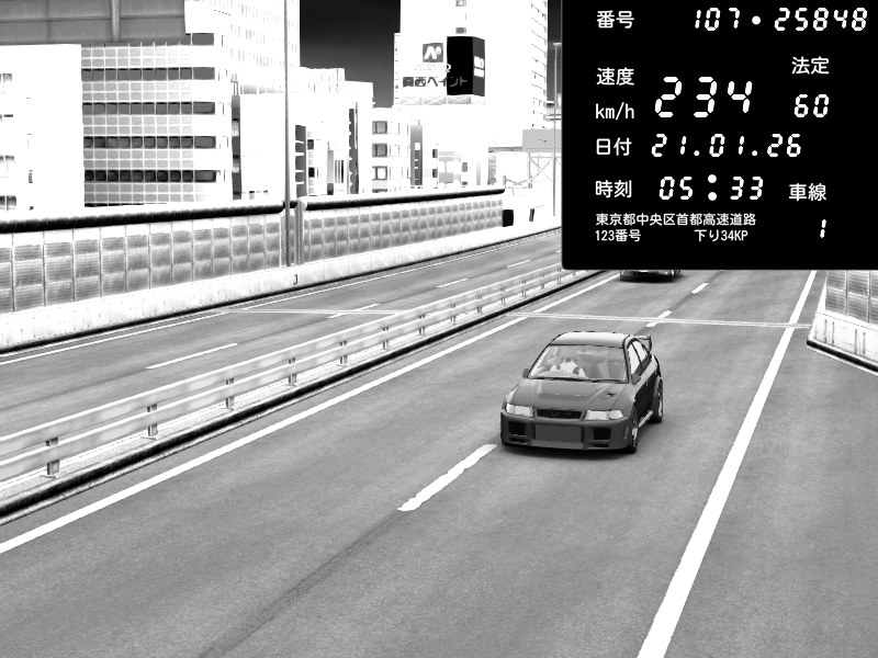 | 2026/01/22 02:17 | C1外回り 芝公園 | 227 / 60 km/h | hac | Mitsubishi Lancer Evolution V Wangan Spec | CAPTURE |
