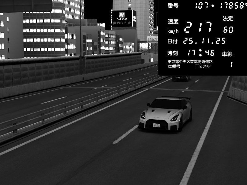 | 2025/11/26 03:09 | C1外回り 芝公園 | 196 / 60 km/h | sinon | Nissan GT-R NISMO 2017 | CAPTURE |