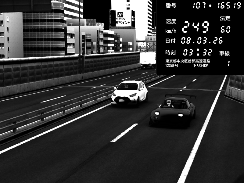 | 2026/03/08 15:08 | C1外回り 芝公園 | 252 / 60 km/h | 老の踏み間違い起こさない為の毎日運転老人 | Honda S2000 Turbo GT1 Amuse (AP1) | CAPTURE |