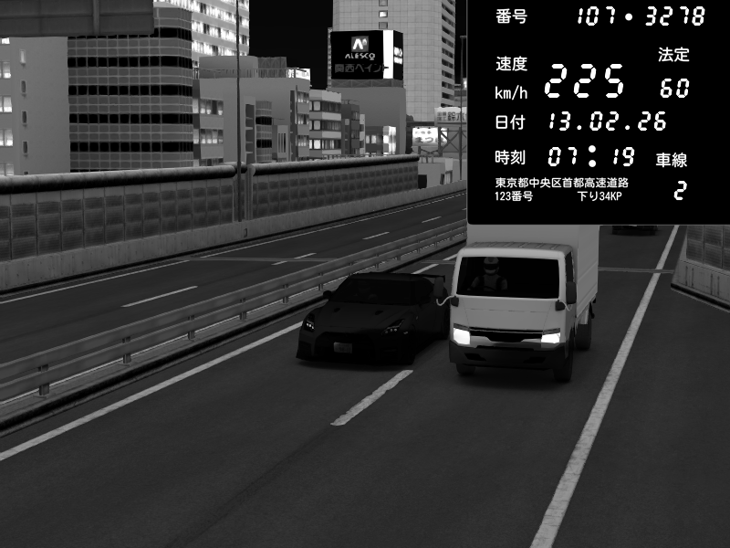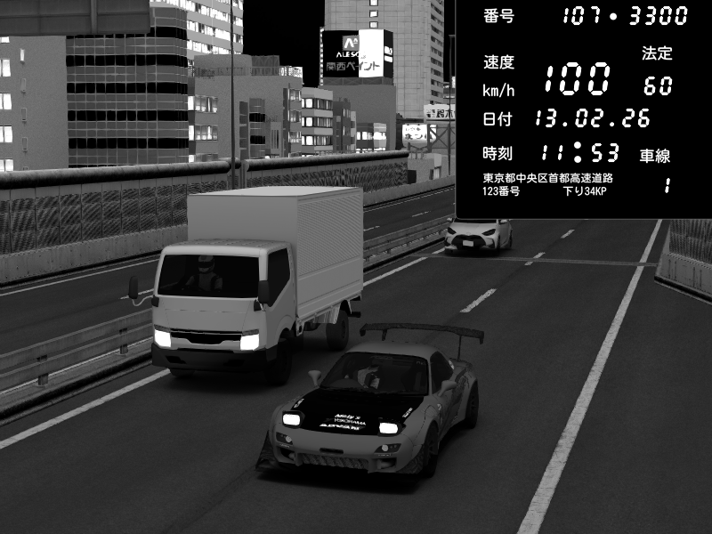 | 2026/02/13 05:52 | C1外回り 芝公園 | 254 / 60 km/h | GSIX-SNINE | Nissan Skyline GTR R33 (S3 - Wangan) | CAPTURE |
