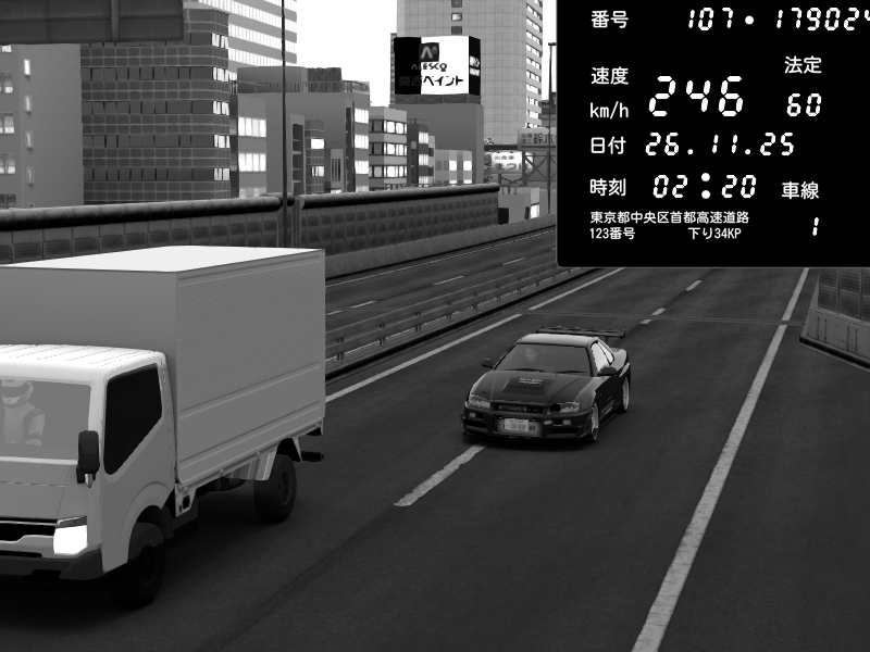 | 2025/11/26 01:34 | C1外回り 芝公園 | 252 / 60 km/h | sinon | Nissan Skyline GT-R R34 Nismo Omori Factory S1 | CAPTURE |
