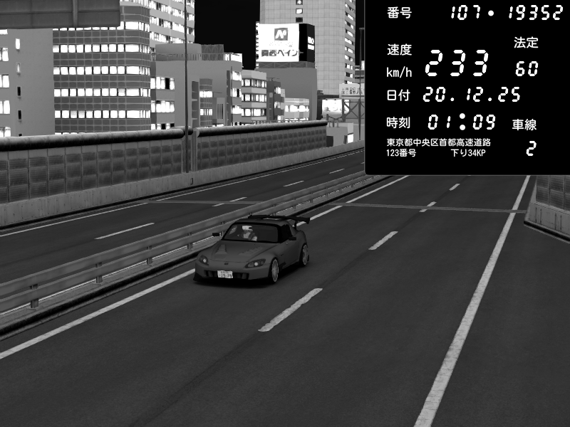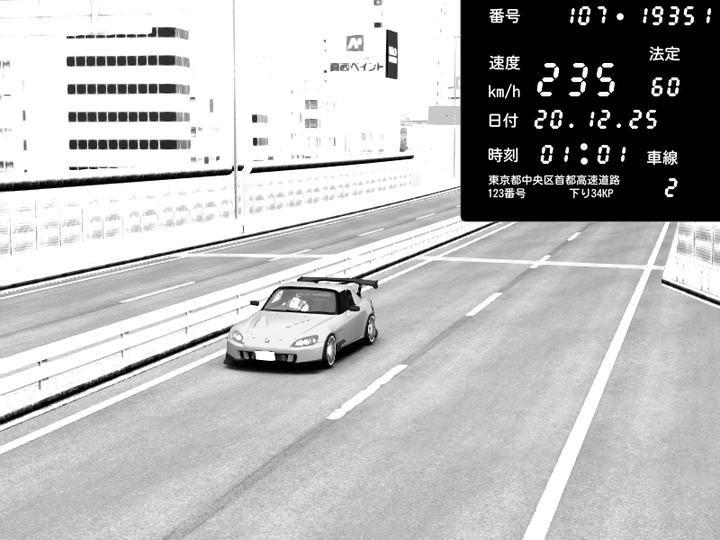 | 2025/12/20 01:12 | C1外回り 芝公園 | 223 / 60 km/h | Player | Honda S2000 Turbo GT1 Amuse (AP1) | CAPTURE |