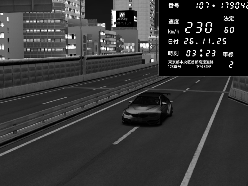 | 2025/11/26 02:12 | C1外回り 芝公園 | 197 / 60 km/h | Player | Honda S2000 Turbo GT1 Amuse (AP1) | CAPTURE |