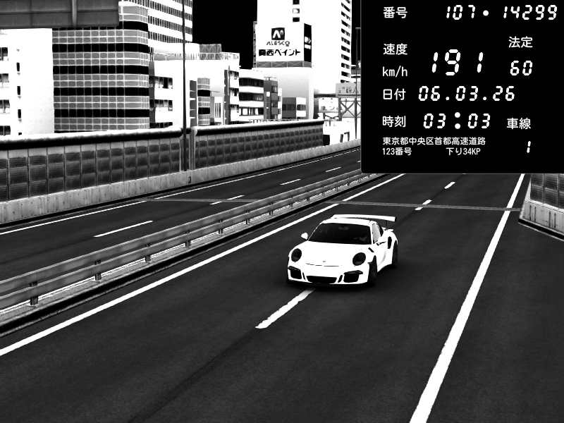 | 2026/03/06 03:03 | C1外回り 芝公園 | 191 / 60 km/h | Masakichi | Porsche 911 GT3 RS | CAPTURE |