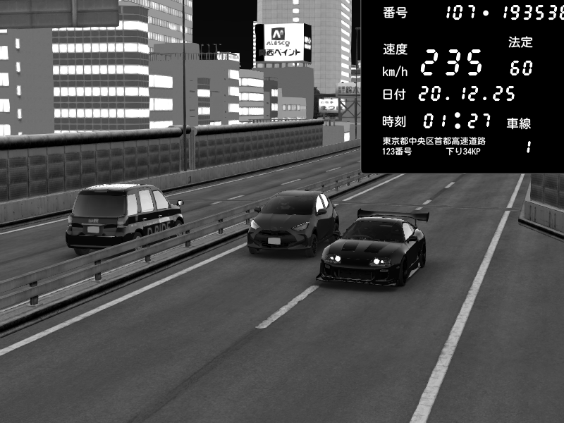 | 2025/12/20 01:27 | C1外回り 芝公園 | 235 / 60 km/h | おじさん(44) | Toyota Supra MKIV Time Attack | CAPTURE |