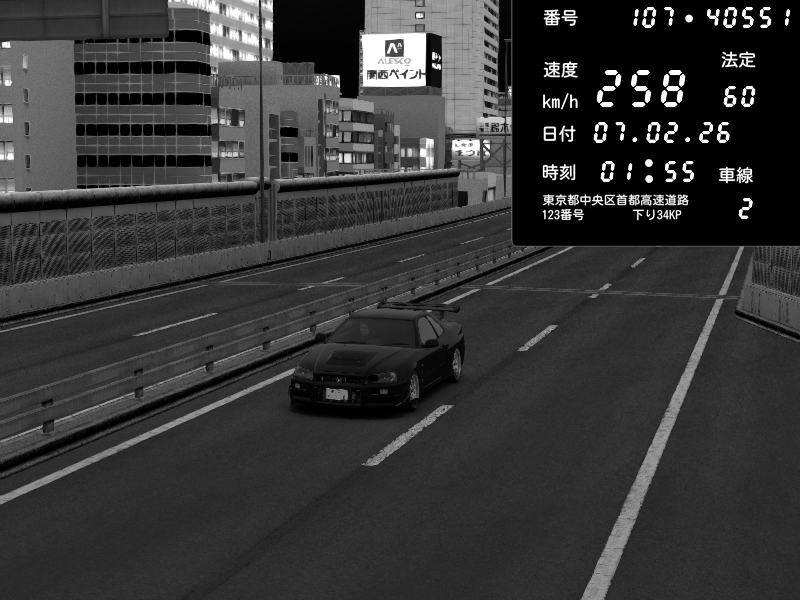 | 2026/02/07 02:10 | C1外回り 芝公園 | 250 / 60 km/h | SHOW5 | Nissan Skyline GTR R33 (S3 - Wangan) | CAPTURE |