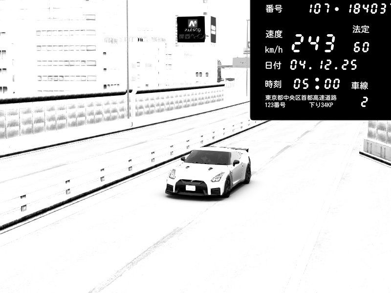 | 2025/12/04 01:47 | C1外回り 芝公園 | 225 / 60 km/h | SoftHard | Nissan GT-R NISMO 2017 | CAPTURE |