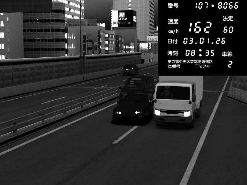 | 2026/01/03 10:33 | C1外回り 芝公園 | 216 / 60 km/h | ナイトシフト | Honda S2000 (AP2 - Legendary) | CAPTURE |