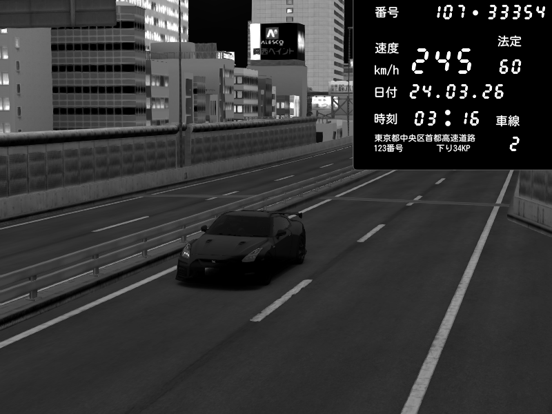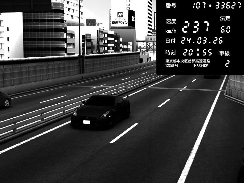 | 2026/03/24 20:43 | C1外回り 芝公園 | 170 / 60 km/h | Kurokabe | Nissan GT-R NISMO 2017 | CAPTURE |