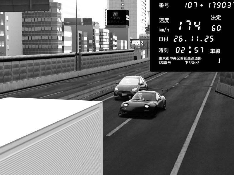 | 2025/11/26 01:41 | C1外回り 芝公園 | 231 / 60 km/h | GC8LOVER | Mazda RX-7 FD3S RE Amemiya | CAPTURE |