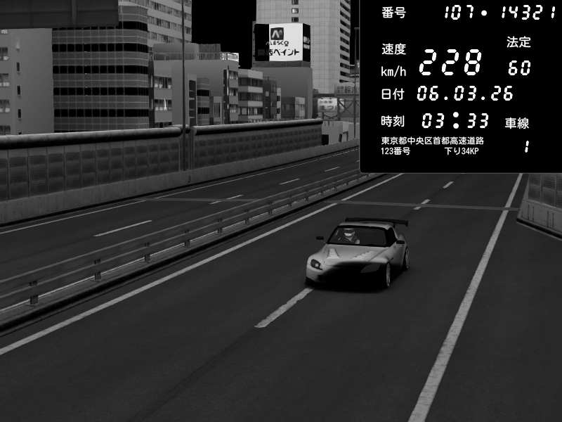 | 2026/03/06 03:33 | C1外回り 芝公園 | 228 / 60 km/h | fuga | Honda S2000 (AP2 - Legendary) | CAPTURE |