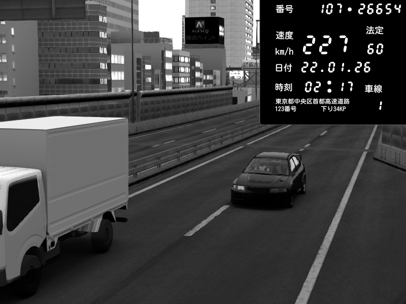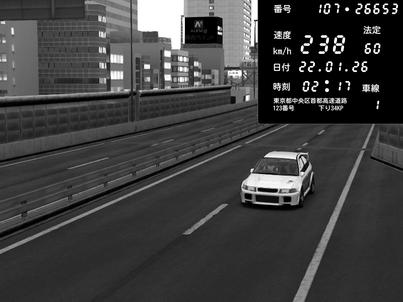 | 2026/01/22 02:17 | C1外回り 芝公園 | 238 / 60 km/h | snow_mogul | Mitsubishi Lancer Evolution V Wangan Spec | CAPTURE |