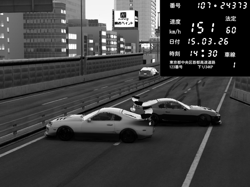 | 2026/03/15 14:37 | C1外回り 芝公園 | 216 / 60 km/h | Player | Toyota Supra MKIV Time Attack | CAPTURE |