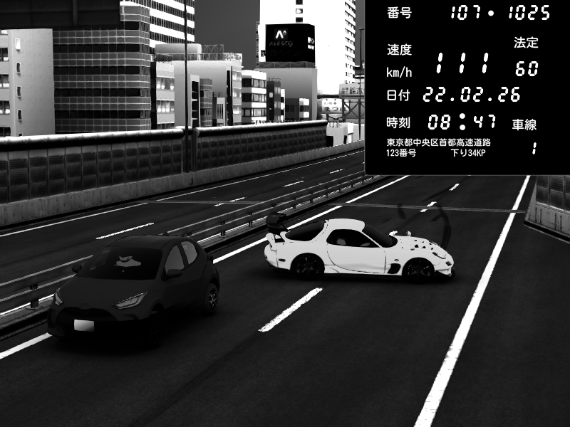 | 2026/02/22 11:45 | C1外回り 芝公園 | 151 / 60 km/h | Nadur Spike | Mazda RX-7 FD3S RE Amemiya | CAPTURE |