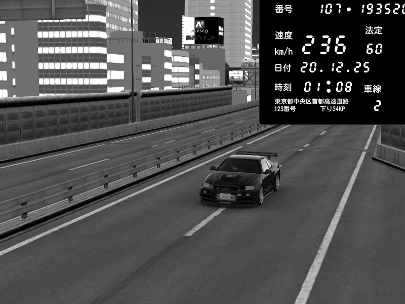 | 2025/12/20 00:58 | C1外回り 芝公園 | 228 / 60 km/h | Player | Nissan Skyline GTR R33 (S3 - Wangan) | CAPTURE |