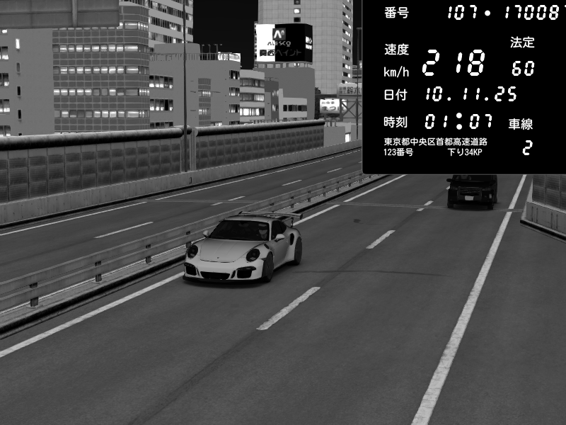 | 2025/11/10 02:01 | C1外回り 芝公園 | 181 / 60 km/h | snow_mogul | Porsche 911 GT3 RS | CAPTURE |
