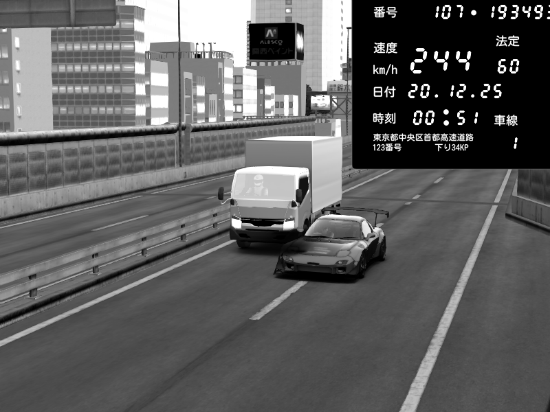 | 2025/12/20 00:54 | C1外回り 芝公園 | 208 / 60 km/h | Player | Nissan Skyline GTR R33 (S3 - Wangan) | CAPTURE |