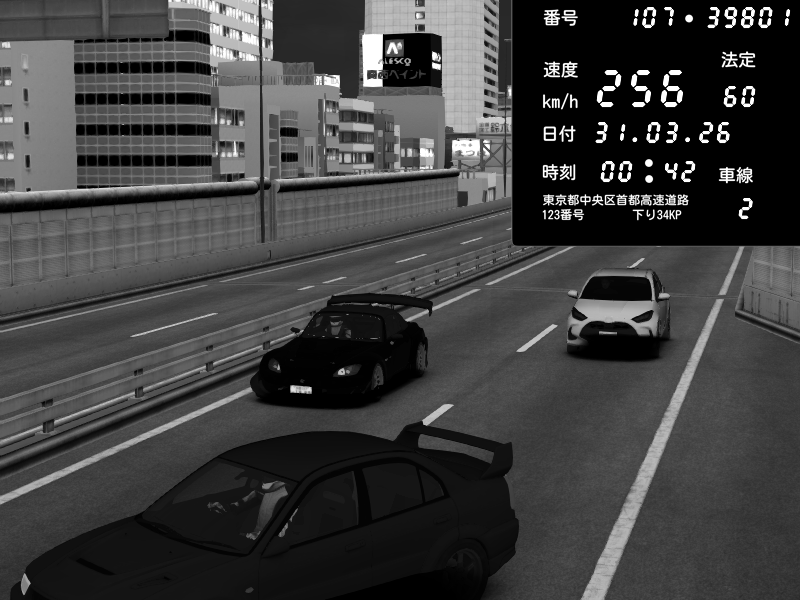 | 2026/03/31 00:47 | C1外回り 芝公園 | 227 / 60 km/h | JOKER | Mitsubishi Lancer Evolution V Wangan Spec | CAPTURE |