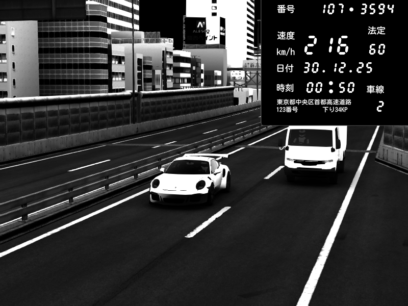| 2025/12/30 00:46 | C1外回り 芝公園 | 230 / 60 km/h | Player | Porsche 911 GT3 RS | CAPTURE |
