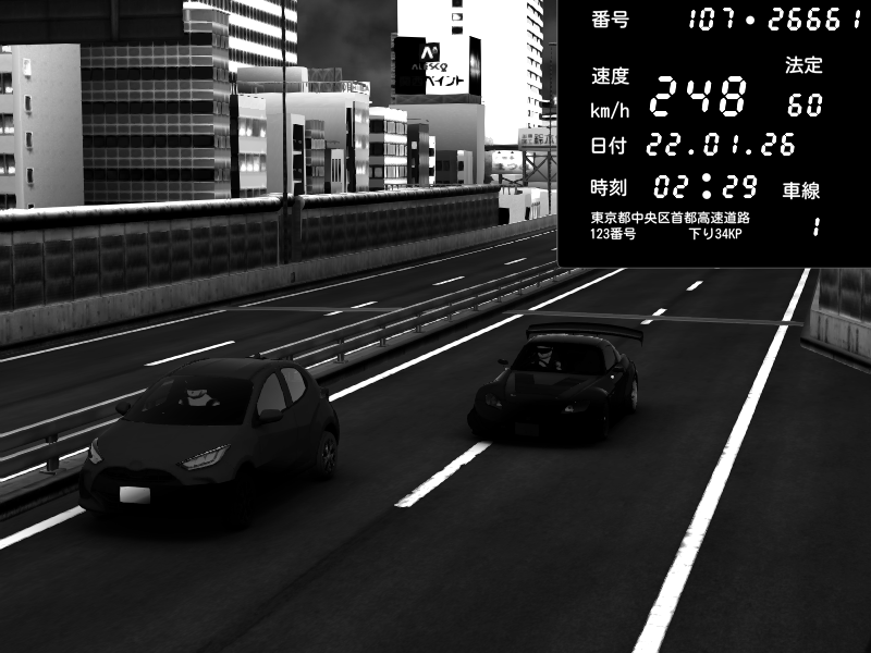 | 2026/01/22 01:46 | C1外回り 芝公園 | 253 / 60 km/h | hac | Honda S2000 Turbo GT1 Amuse (AP1) | CAPTURE |