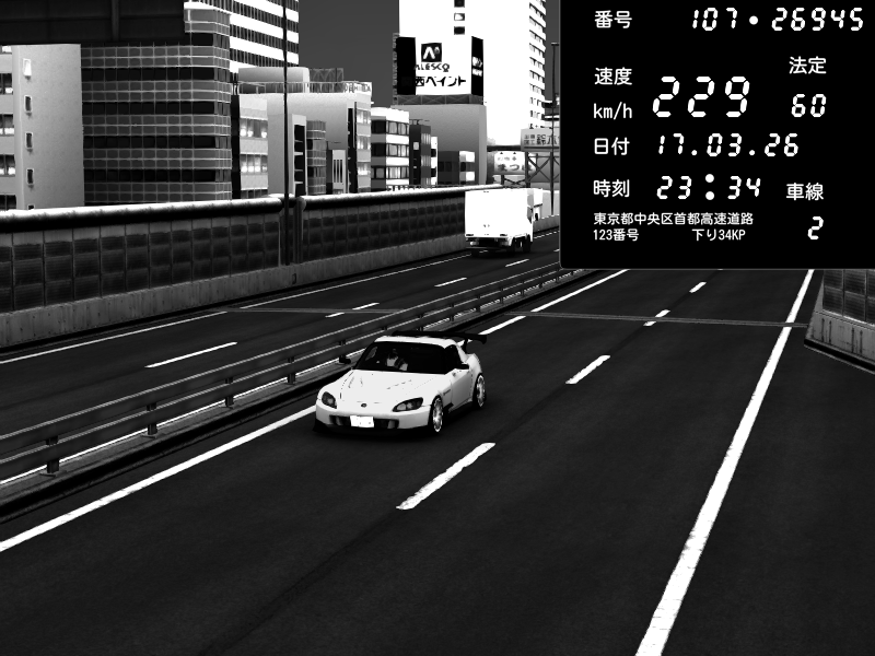 | 2026/03/17 23:43 | C1外回り 芝公園 | 252 / 60 km/h | R4yzern | Honda S2000 Turbo GT1 Amuse (AP1) | CAPTURE |