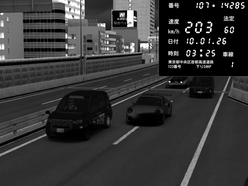 | 2026/01/11 04:02 | C1外回り 芝公園 | 159 / 60 km/h | YF90 | Porsche 911 GT3 RS | CAPTURE |