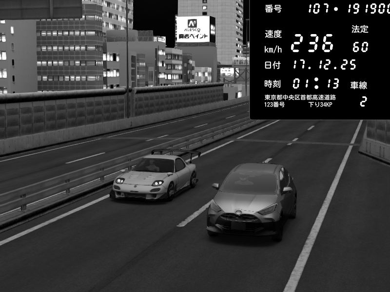 | 2025/12/17 09:56 | C1外回り 芝公園 | 235 / 60 km/h | ホーネット | Mazda RX-7 FD3S FEED Afflux GT3 | CAPTURE |