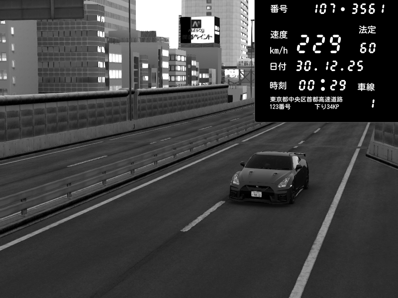 | 2025/12/30 00:29 | C1外回り 芝公園 | 229 / 60 km/h | Player | Nissan GT-R NISMO 2017 | CAPTURE |