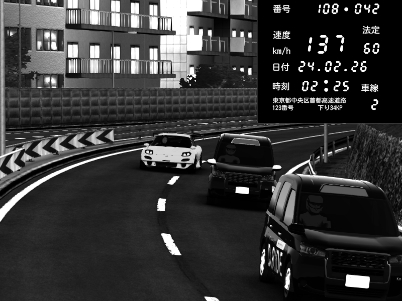 | 2026/02/23 01:55 | 4号下り 代々木 | 112 / 60 km/h | Ninja Mubarak | Mazda RX-7 FD3S FEED Afflux GT3 | CAPTURE |