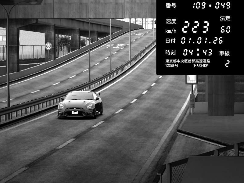 | 2026/01/01 04:43 | K1上り 子安 | 223 / 60 km/h | CAFFEINE | Nissan GT-R NISMO 2017 | CAPTURE |