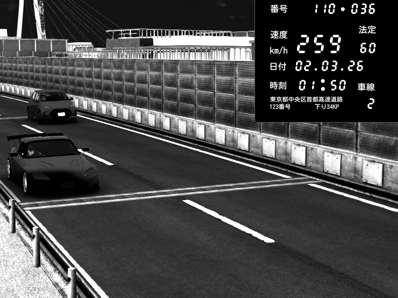 | 2026/02/28 03:42 | K1上り 羽田 | 125 / 60 km/h | EXIA | Honda S2000 Turbo GT1 Amuse (AP1) | CAPTURE |