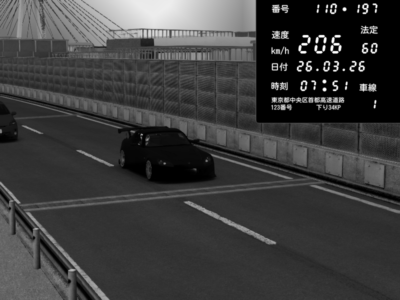 | 2026/03/26 07:51 | K1上り 羽田 | 204 / 60 km/h | MrFutura | Honda NSX [NA1] PVLSX | CAPTURE |